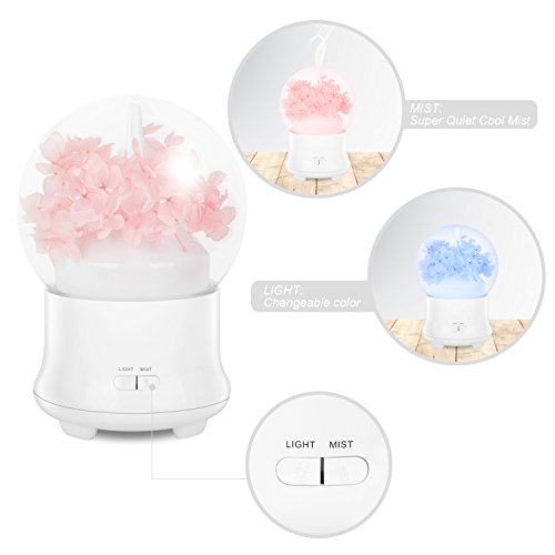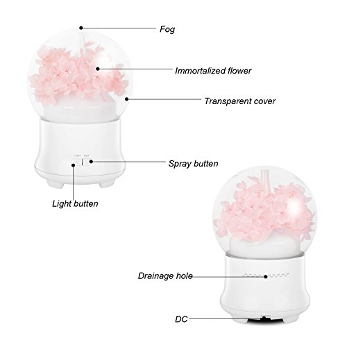 - UNIQUE AND COMPACT DESIGN. This diffusers for essential oils is crystal Ball shaped with immortal flower, which makes it look very natural and primitive. Create instant elegant atmosphere to your life space or studio