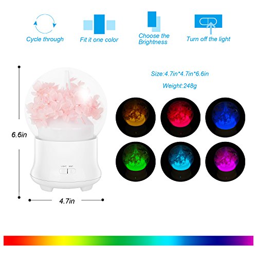 Essential Oil Diffuser Immortal Flower Aroma Essential Oil 100ml Cool Mist Humidifier with Adjustable Mist Mode 7 Color LED Lights Changing for Home Office Baby