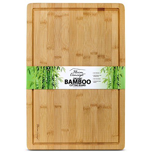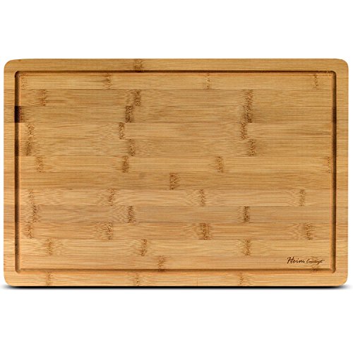 PREMIUM ORGANIC BAMBOO [ HEIM CONCEPT ] EXTRA LARGE CUTTING BOARD AND SERVING TRAY WITH DRIP GROOVE [ 18" X 12" X 3/4" INCH THICK ] ECO-FRIENDLY THICK STRONG BAMBOO KITCHENWARE