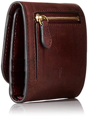 -. Feature : Medium snap leather wallet from frye's iconic campus collection, is made with american chrome tanned leather that creates a tie-dye affect throughout, no 2 wallets will look the same / Snap closure / 12 card slots, 1 exterior zip change compartment / Stitching details on body, rivet hardware / Measurements: 4''w x 3.5''h x .25''d