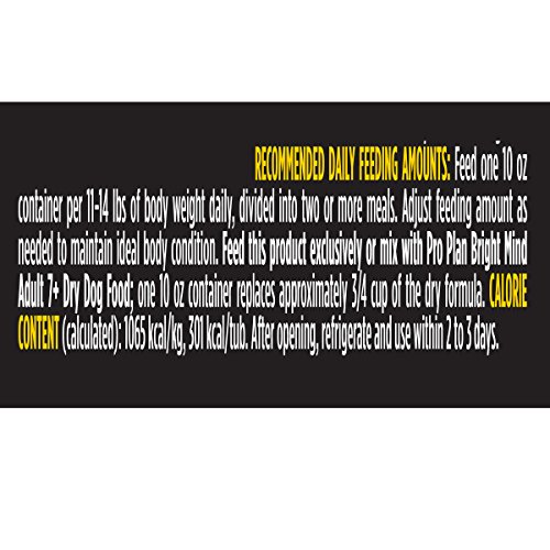-. Binding : Misc. -. Brand : Purina Pro Plan -. Label : Purina Pro Plan -. Manufacturer : Purina Pro Plan -. Model : 17424-Parent -. MPN : 17424-Parent -. PackageQuantity : 1 -. PartNumber : 17424-Parent -. ProductGroup : Pet Products -. ProductTypeName : PET_SUPPLIES -. Publisher : Purina Pro Plan -. Studio : Purina Pro Plan -. Title : Purina Pro Plan Bright Mind Adult 7+ Wet Dog Food 8-10 oz. Tubs