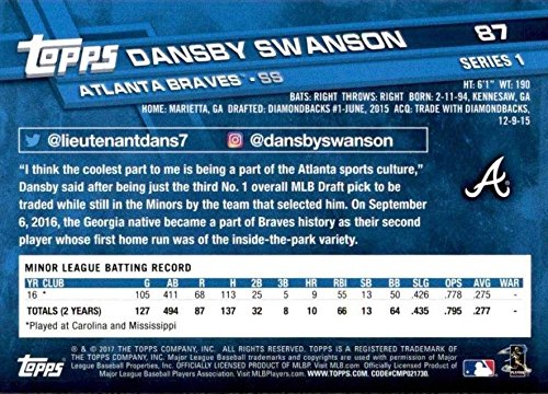 Atlanta Braves 2017 Topps Complete Mint Hand Collated Team Set with Dansby Swanson Rookie Card and Freddie Freeman Plus