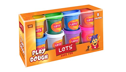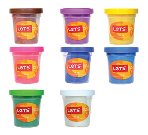 Let's Natural Play Dough 8 Color Set For Kids NATURAL INGREDIENTS - play dough is made from wheat flour and is colored with all natural Pigments. No unnecessary chemicals are added to either the dough or packaging that is harmful to human health. GREAT STARTER PLAYSET - receive 8 different colors to fuel the imagination. TOTAL OF 21 oz OF PLAY DOUGH - each jar of play dough weighs 2.6 oz, giving you a total of 21 oz of play dough to spark your creativity! EASY CLEAN UP - cleaning is as easy as wiping your surface down with a damp cloth. Fuel your child's creativity. This 8 color play dough set is perfect for children (and adults!) who want to play and sculpt. The clay is very soft and easy to mold. This set includes 8 colors, 1 each of the following: green, yellow, purple, light blue, brown, orange, pink, and red. Each jar of play dough weighs 2.6 oz, giving you a total of 21 oz of play dough to spark your creativity! Purchase as a gift or add to your collection. Finished projects can be air dried to put on display. Non-toxic - natural ingredients. Rest easy knowing that Let's Have Fun Play Dough is made from all natural, non-toxic ingredients. To ensure the human health safety, all Let's Have Fun Play Dough is manufactured from wheat flour. The bold, fun colors are made from natural pigments. Hypoallergenic, dermatologically-tested, and paraben-free! Dough is not gluten-free. No unnecessary chemicals are added to either the dough or packaging that is harmful to human health. Instructions: If play dough is left open, it may dry within 3-4 hours (depending on humidity and temperature of environment). Store dough in closed container after play. To prevent large projects from drying, wrap dough in damp cloth. Add clean water to reconstitute dried dough. Inspire creativity and buy now!Feature