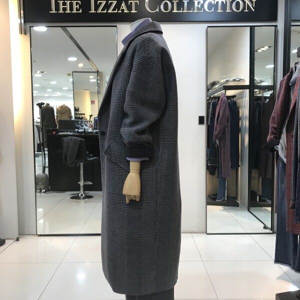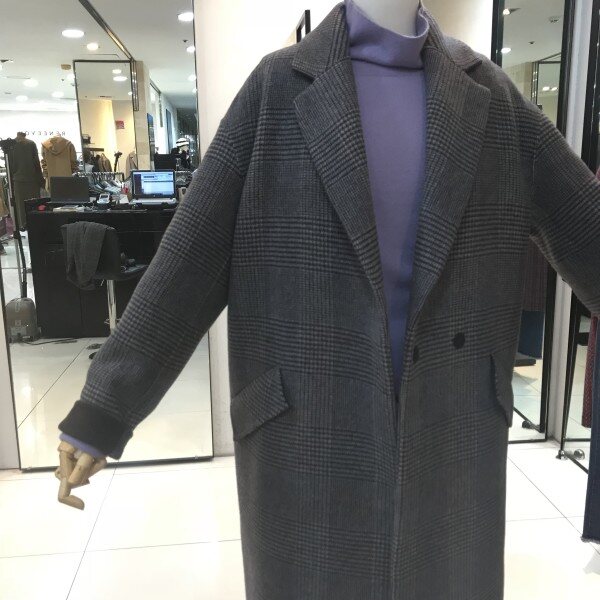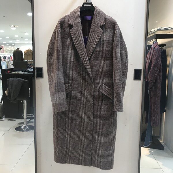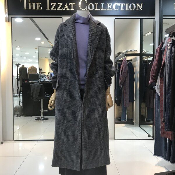 체크 패턴에 테일러드카라 디자인에깔끔하게떨어지는 실루엣이 맵시있는스타일을 연출해주는 롱코트입니다