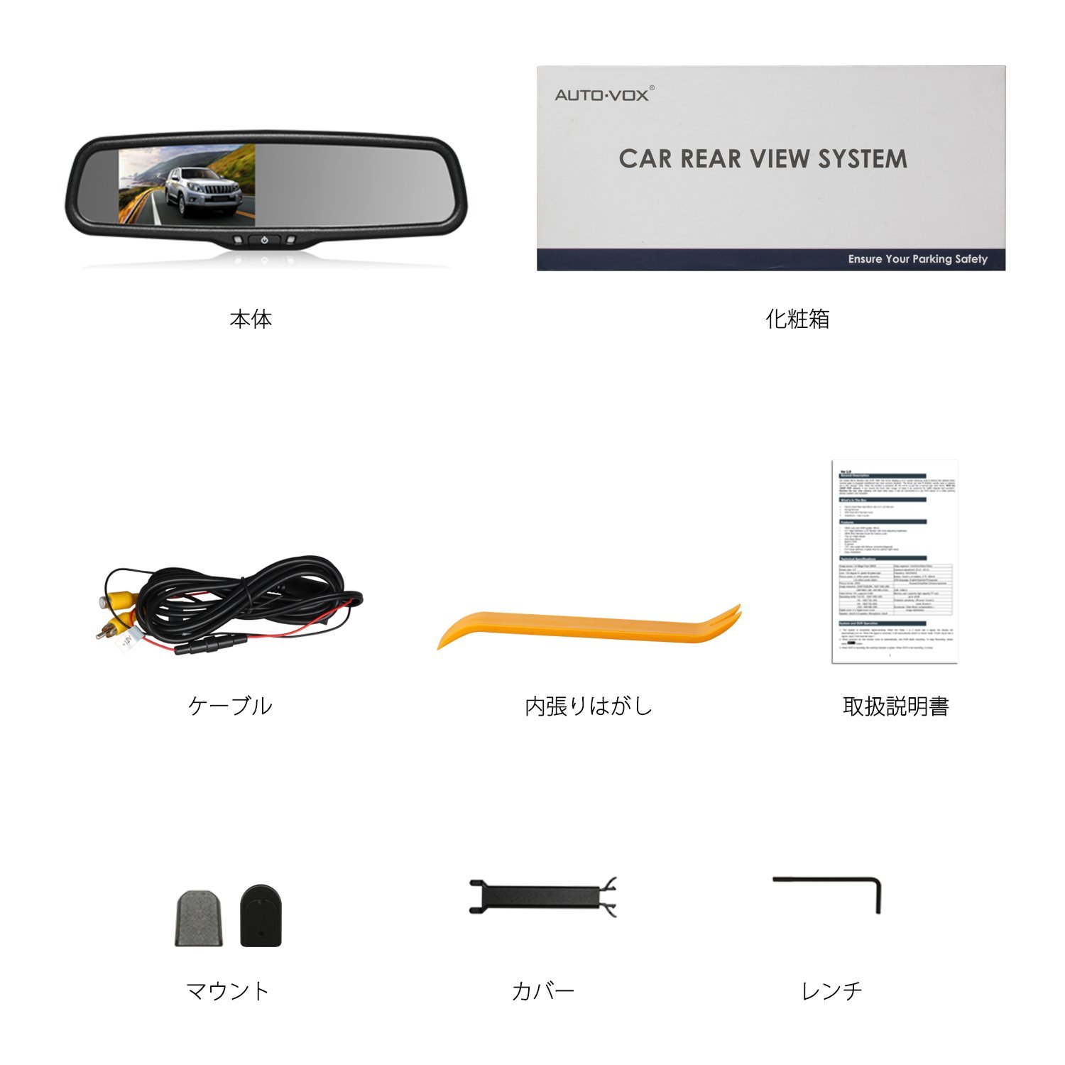 AUTO-VOX T1400 Room Mirror Monitor 2 Systems Video Input 4.3 Inch Auto Dimming Function