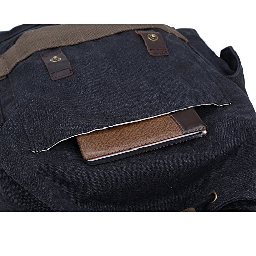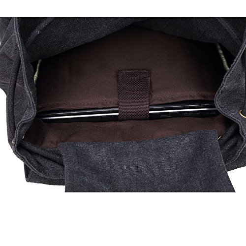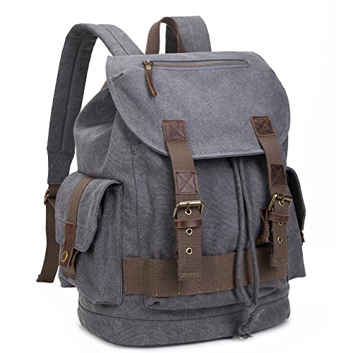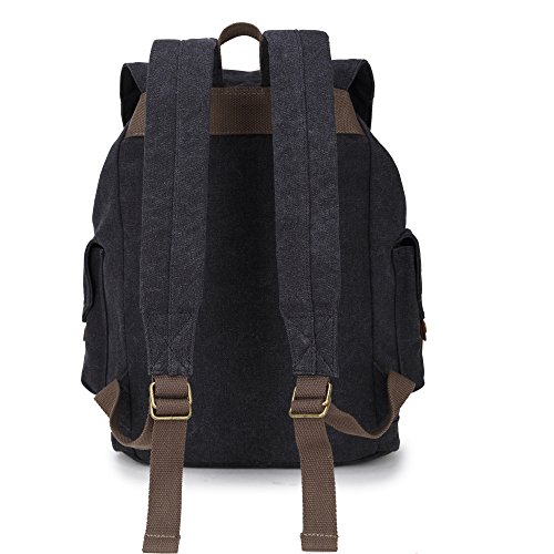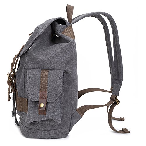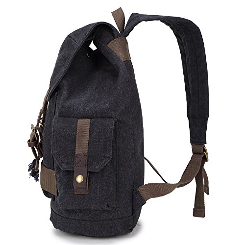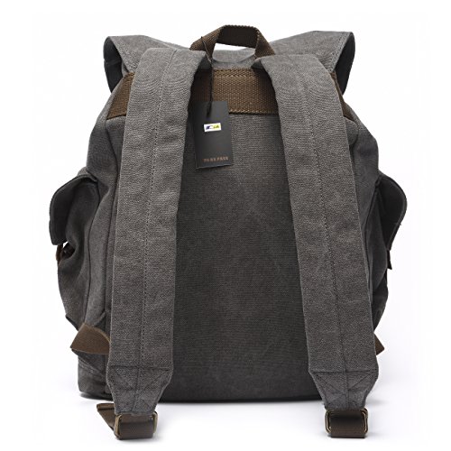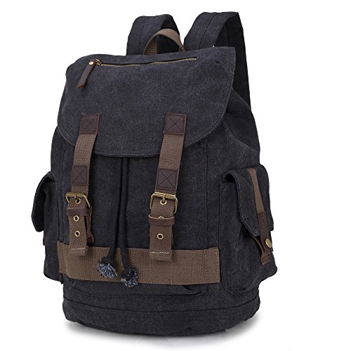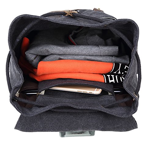 -. Brand : Mlife -. Department : mens -. Feature : High density canvas with first layer crazy horse belt; Retro bronze hardware / Easy to fit 14.1'', 14.6'', 15.6' 'latpop ,A4 Size Magazine, 4-8 clothigns; Suit for short journey / One large compartment with laptop sleeve and indepent zipper pocket.1 exterior front zipper pocket on flap. 1 exterior velcro pocket. 2 side hasp pockets / Adjustable padded shoulder straps for carrying comfort / Size: Approx. 14.17"L x 17.72"H x 7.48" W (Large capacity); Weight:2.42 pounds -. PackageQuantity : 1 -. ProductGroup : Apparel -. ProductTypeName : LAGE -. Size : Large -. Title : Mlife Vintage Canvas Backpack Casual Bookbag Rucksack