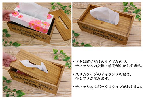 -. Feature : 古木のボックスに焼印風にプリントされたアンティーク風の木箱のティッシュボックスです!