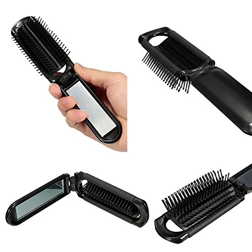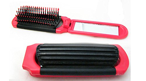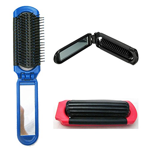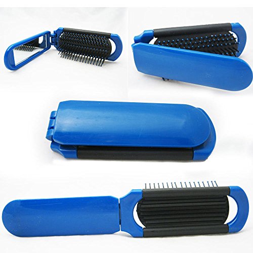 BeautyN Folding Hair Brush with Mirror Compact Size Black/Blue/Pink Random Color