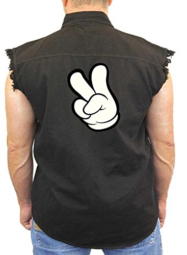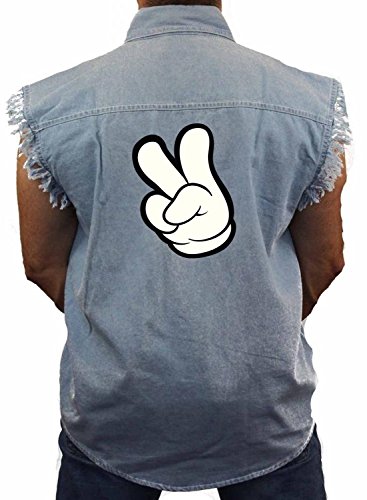 (Juiceclouds)/Men/Outerwear/DIRECT FROM USA/Juiceclouds | Sleeveless Denim Ves t Cartoon Peace Fingers M-5XL