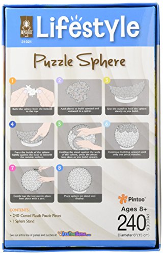 -. Feature : University Games and BePuzzled introduce the Amazing Lifestyle 3D Puzzle Globe Sphere that's not only an engaging challenge - but also completely functional / Once assembled this unique 240-piece puzzle will reward with a beautiful durable 6-inch sphere showing the World map / The Globe Sphere is made of curved interlocking plastic pieces that, once snapped in place, do not fall apart / This brainteaser is made of curved interlocking plastic pieces that do not fall apart, also comes with its own stand - suitable for kids age 8 and over / Parents, teachers, and care-givers know positive benefits of innovative, educational activities for hungry minds; University Games makes learning a whole lotta fun