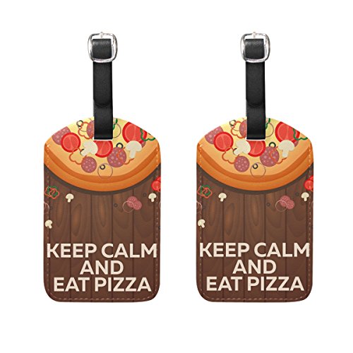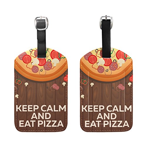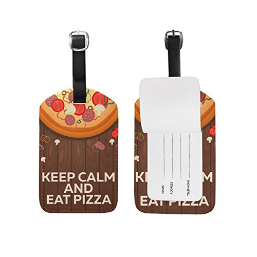 (My Little Nest)/Accessories/Luggage, Bags Travel/DIRECT FROM USA/Travel Luggage Tag Keep Calm and Eat Pizza PU Leather Baggage Suitcase Tag Name Address ID Labe...