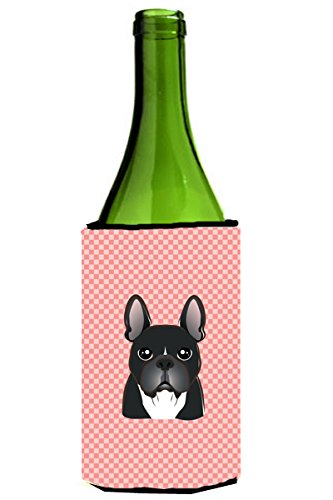Checkerboard Pink French Bulldog Wine Bottle Beverage Insulator Hugger BB1227LITERK