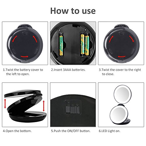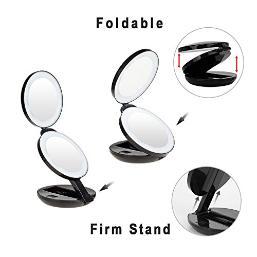 - Portable with Firm Stand, Lightweight For Travel: Beauty mirror compact to carry in handbag. The firm stand allows it to stay stable on table. As is foldable, you can adjust the angle of two mirrors based on your needs. Feel free to use it in office, car, camping…