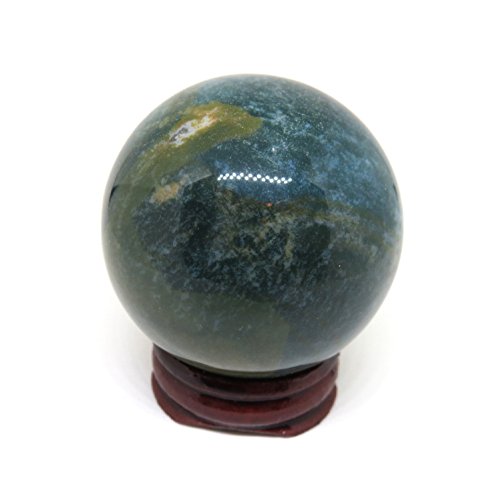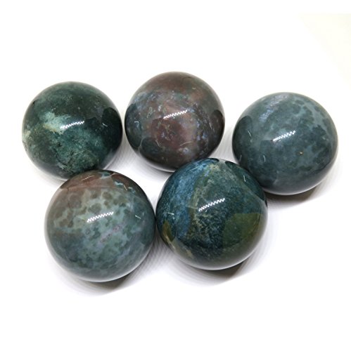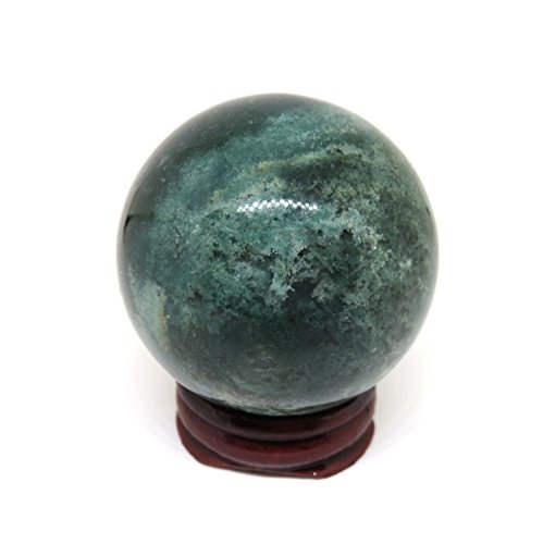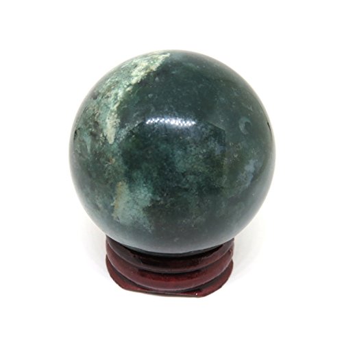 50mm Polished Green Moss Agate Mocha Stone Crystal Gemstone Sphere with Stand