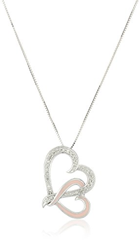 -. Title : 10k White Gold Pink Enamel with Diamonds Double Heart Pendant Necklace (1/10 Cttw)