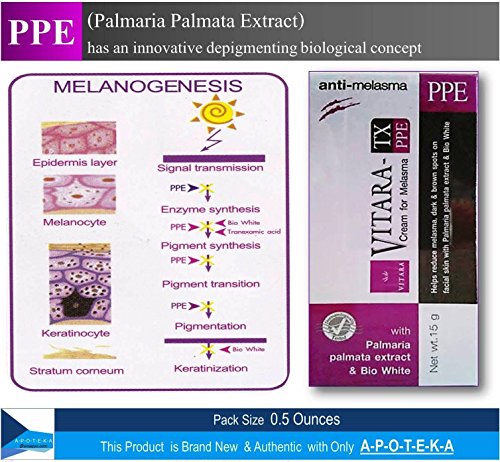 - Title : Anti-melasma Cream with PPE Innovative Depigmenting Biological Concept (Vitara-TX PPE Cream X 0.5 Ounces) Effective for Melasma Improve the Appearance of Melasma and Lightens Dark & Brown Spots on Facial Skin
