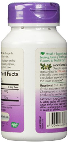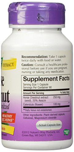 -. Binding : Health and Beauty -. Brand : Nature's Way -. Label : NATURE'S WAY -. Manufacturer : NATURE'S WAY -. PackageQuantity : 1 -. ProductGroup : Health and Beauty -. ProductTypeName : HEALTH_PERSONAL_CARE -. Publisher : NATURE'S WAY -. Studio : NATURE'S WAY -. Title : Nature's Way Horsechestnut Standardized Extract