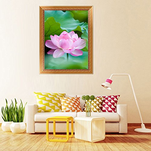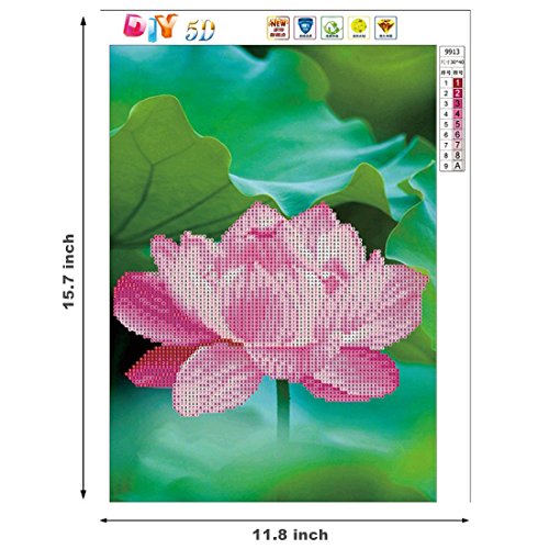 DIY 5D Diamond Painting by Number Kit, Lotus Flower Square Diamond Embroidery Cross Stitch Arts Craft Supply Canvas Wall Decor