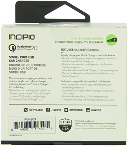 -. Title : Car Charger, Incipio [Faster] Quick Charge 2.0 USB Car Charger-Black
