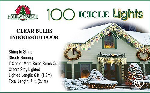 Holiday Essence 100 Icicle Lights, Clear Bulbs, Professional Grade for Indoor & Outdoor Use, Soft Bright White Bulbs with White Wire, UL listed.