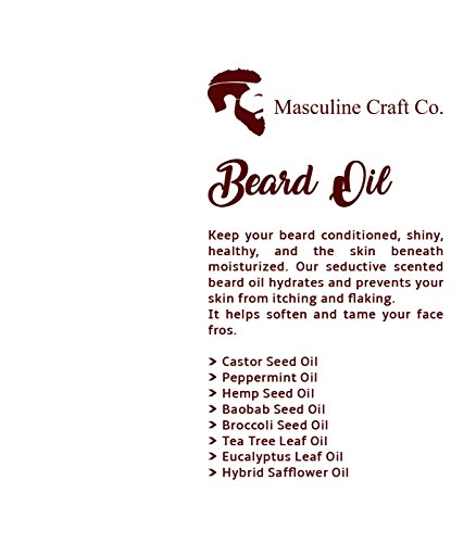 EFFECTIVE BEARD OIL MOISTURIZER: Masculine Craft Beard Oil Moisturizer is meant to moisturize beard and prevent the skin underneath from itching and flaking. It also softens and nourishes your beard hair for healthy beard growth. It is the most effective beard softening oil in the market.
