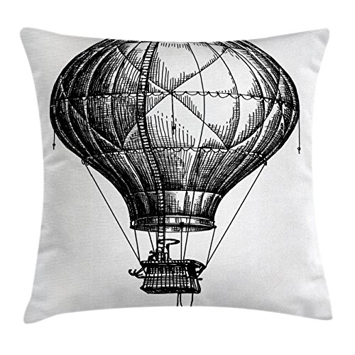 (Ambesonne)/Bedding Bath/Bedding/DIRECT FROM USA/Sketchy Throw Pillow Cushion Cover by Ambesonne, Big Hot Air Balloon in the Sky Vintage Style T...