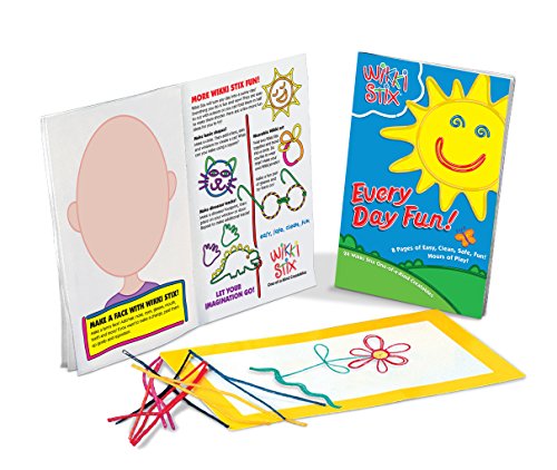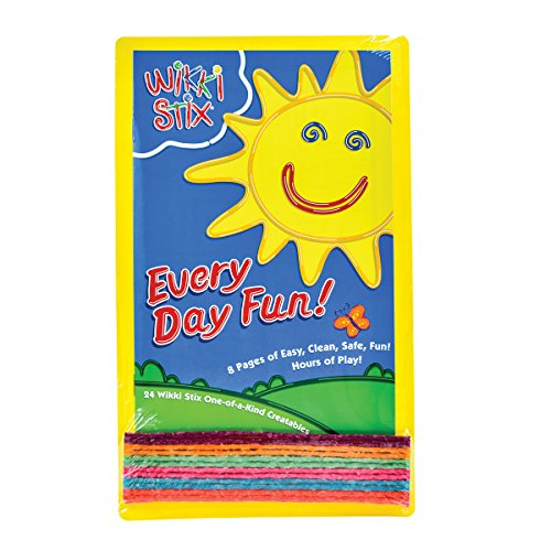 Wikki Stix Every Day Fun includes 24 6" Wikki Stix, a lightweight play-board and an 8-page booklet of fun activities from connect-the-dot to making a funny face!