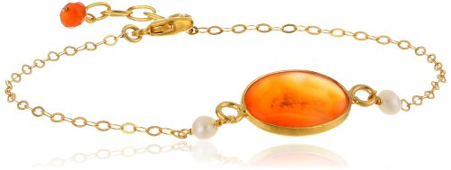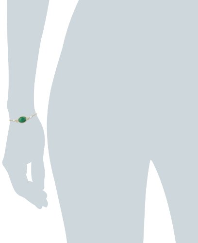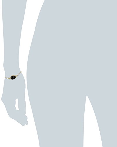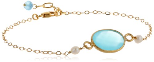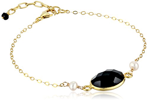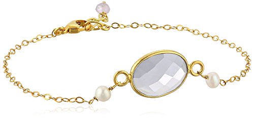 -. Title : Faceted Oval Gemstone Bezel and White Freshwater Cultured Pearl on Gold Plated Sterling Silver Chain, 7.5"