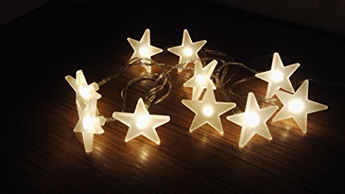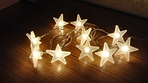 Hzenya Fairy Light Frosted Acrylic Star string light garland,10 Warm White LEDs, 5.8 feet,Battery Operated (warm white LED)