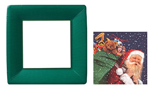 - Napkins feature Santa Claus in the snow with presents