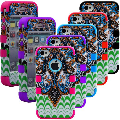 - Feature : COLOR: This case comes in a deep high quality color that will last the life of your iPhone 4 and 4S smartphone because the color is fused with the hard rubberized material itself and it is than glossed over. This guarantees that fading does not occur. / WARRANTY AND PACKAGING: This product will come sealed in the manufacturer authorized packaging and will come with a true lifetime warranty that is good for one free replacement during the course of the original buyers' life. The manufacturer warranty is guaranteed if your purchase has any manufacturer defects that occur during your ownership of this product. / MATERIALS AND DESIGN: IMPORTANT FEATURES AND DESIGN: This case comes with a flexible easy grip silicone gel that prevents your iPhone 4 and 4s phone from slipping out of your hands yet will not latch onto the material of your pocket. This means you can slide the phones in and out of your pocket with ease and keep your phone from slipping out of your hands. Keep your iPhone 4 and 4S usable and protected in style with this duo-shield hybrid Case Constructed from smooth, treated silicone that resists dirt and stains. / MATERIALS AND DESIGN: The case has a hard external fitter 2 piece layer with a silicone flexible gel interior layer for double the protection. This case protects the iPhone 4 and 4S from scratches and dust. The snap together 2 piece external plastic layer provides extra security against bumps and falls. The unique combination of hard plastic and soft silicone material gives this case an unmatched look. This high quality silicone tough commuter case for the iPhone 4 and 4S is thick and durable. Also note that no parts of this are made of toxic or hazardous materials. Our manufacturers are all subject to strict standards enforced by our business and their local governments. / COMPATIBILITY: It is important to note that the iPhone 4 and 4S by Apple is for sale from many different business and this case is compatible with every iPhone for sale from every single business that sells it including Sprint, T-Mobile, Verizon, At&T, China Mobile, Cricket and more. The iPhone 4 comes in 8GB, 12GB, 16GB, 32GB and a 64GB configuration and this case is compatible with each GB configuration. The iPhone 4 comes in the following colors; Black, White, Silver and Gold. This case is compatible with each of those iPhone 4 and 4S colors. There are also 4 different models of iPhones in the 4th generation series; iPhone 4 (Models: A1349 and A1332) and the iPhone 4S (Models: A1387 and A1431) and this case is compatible with all 4 of those models. If you are looking for a different color of case please see our inventory for the large selection of colors we have in stock!