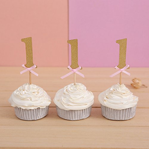 Set of 24 Golden Number One Cupcake Toppers Baby Girl First Birthday Decors - by Giuffi