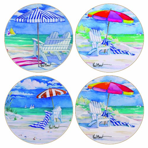 CoasterStone AS180 Absorbent Coasters, 4-1/4-Inch, "Beaches", Set of 4