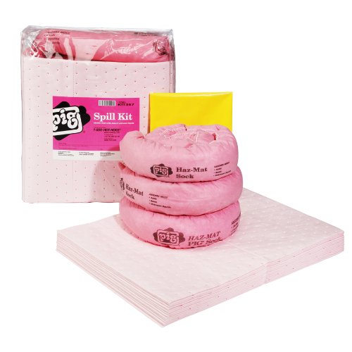 -. Feature : Compact kit with zipper closure is ideal for outfitting a vehicle fleet / Pig hazmat socks stop spreading spills; Pig hazmat pads absorb quickly / Pig hazmat absorbents are specially treated for unsurpassed performance with concentrated corrosives, such as 98 percent sulfuric acid and 30 percent sodium hydroxide / Contains temporary disposal bags for used absorbents / Transparent bag lets you check supply levels at a glance