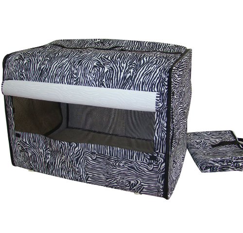 -. Title : Zebra Dog Cat Pet Bed House Soft Carrier Crate Cage w/Case L