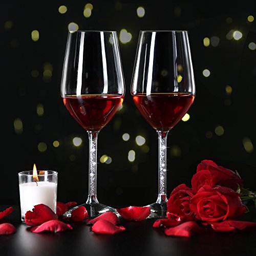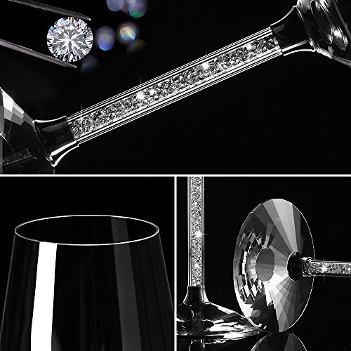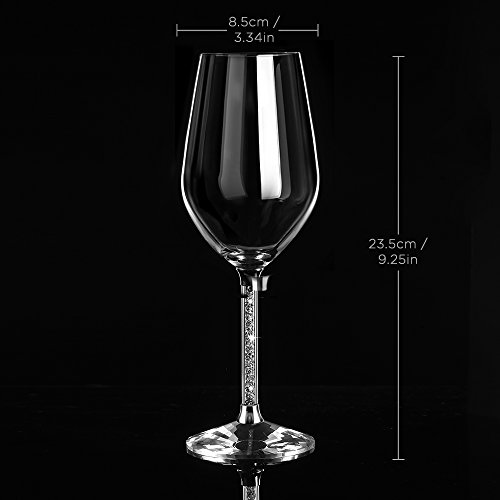 Outstanding Material, Design, and Craftsmanship A dream wine glass, crafted with fine crystal, with its thin and smooth rim, rhinestone long stem and perfectly cut base, lets you enjoy the rich flavor and the vision of joy. Besides, it's also great addition to your bar table.
