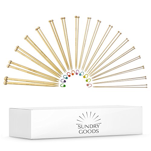 Knitting Needles Set - Bamboo Wood - Straight Single Pointed Kit of 36 Wooden Needles (18 Pairs) of Sizes 2mm - 10mm (US Sizes 0-15) - 25cm Long - Great Hand Knitting for All Yarns - By Sundry Goods