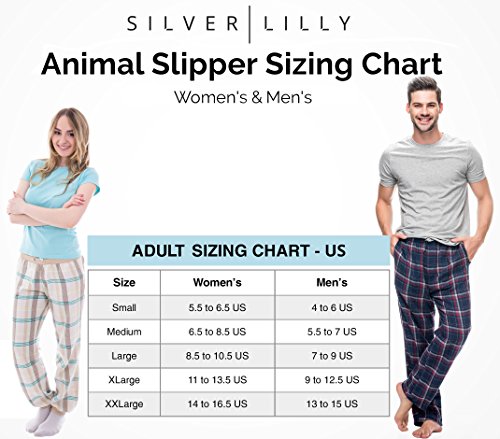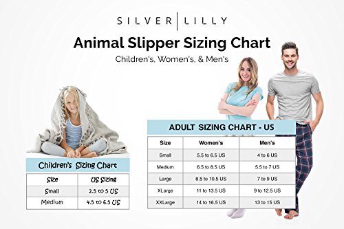 -. Binding : Apparel -. Brand : Silver Lilly -. Department : unisex-adult -. Feature : CLASSICALLY COMFORTABLE - Bunny slippers are the pop culture slippers of choice, so why not get a pair of your own? These killer bunnies are more than happy to keep your feet toasty warm. / GRIPPED SOLES - Traction dots throughout the sole ensure your slippers stay right where you want them. / PADDED FOOTBED - Cushioned footbed comfortably fits around your feet keeping them nice & warm. / PERFECT FOR LOUNGING - These soft sole house slippers feature a convenient slip on design, making them easy to put on when it's time to relax. / ADULT SIZING - Small fits shoe sizes: Women's 5.5 - 6.5; Men's 4 - 6. Medium fits shoe sizes: Women's 6.5 - 8.5; Men's 5.5 - 7. Large fits shoe sizes: Women's 8.5 - 10.5; Men's 7 - 9. X-Large fits shoe sizes: Women's 11 - 13.5. Men's 9 - 12. -. PackageQuantity : 1 -. ProductGroup : Shoes -. ProductTypeName : SHOES -. Title : Silver Lilly Classic Bunny Slippers - Plush Animal Slippers