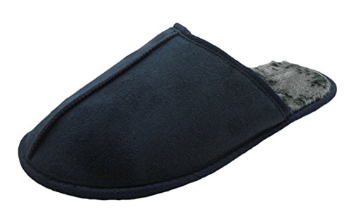 -. Binding : Apparel -. Brand : Fashion Blue -. Department : mens -. Feature : Faux Suede / PREMIUM QUALITY: We work closely with our dedicated manufacturers to ensure we provide the best possible product before we put it on the market. / FEATURES: Lined with full faux-fur, these mule slippers will keep your toes toasty on the evenings. The slip-on mules feature a suede upper with seam and a rubber sole. / STYLE: Comfortable, Casual and easy to wear side in slippers constructed with durable traction rubber skid-resistant outsoles for dual wear inside the home or outside. / SIZING: The size on the bottom of slipper does not refer to US sizes. Please choose your correct size from the size menu and disregard the size on the bottom of the slipper. -. ProductGroup : Shoes -. ProductTypeName : SHOES -. Title : Men’s Suede House Slipper w/ Faux Fur Lining