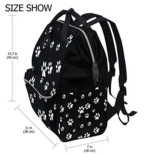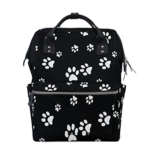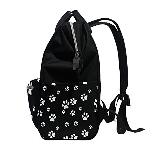 (WOZO)/Accessories/Luggage, Bags Travel/DIRECT FROM USA/WOZO Black White Paw Print Multi-function Diaper Bags Backpack Travel Bag