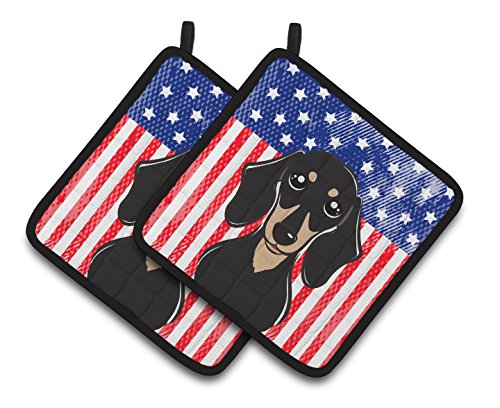 Caroline's Treasures American Flag & Smooth black & Tan Dachshund Pair of Pot Holders BB2145PTHD, 7.5HX7.5W, Multicolor