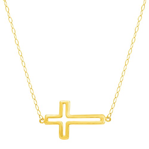 Celebrate your faith in style with this delicate cross necklace. The silhouette design is crafted in 10K gold on a delicate cable chain. Piece measures 3/8 by 5/8 inches with an 18-inch total length.Feature