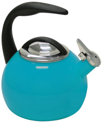 Chantal commemorated its 40th year in business with this fashionable teakettle. This kettle's ergonomic stay-cool handle fits comfortably in the hand for easy pouring while the wide flat bottom facilitates rapid boiling. Our easy-clean, high quality enamel, which is guaranteed not to fade. Enamel-on-Steel teakettles are made with magnetic carbon steel which means they will work on all cooktops INCLUDING magnetic induction. Enamel is also easy to clean and the color will not fade over time. 2 quart functional capacity. Limited warranty. May require hand protection when using a gas or professional stove.Feature