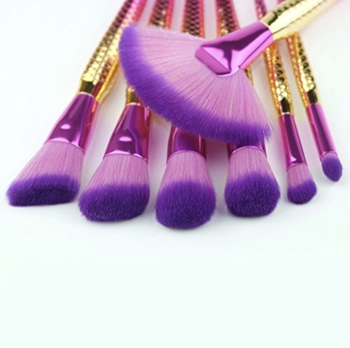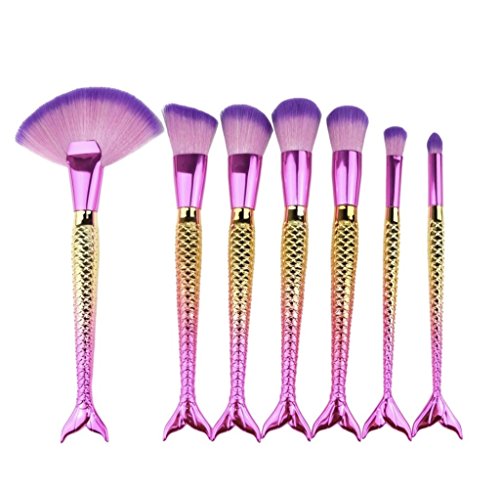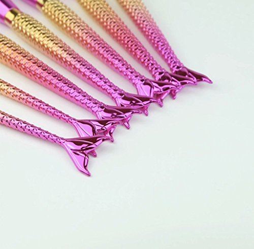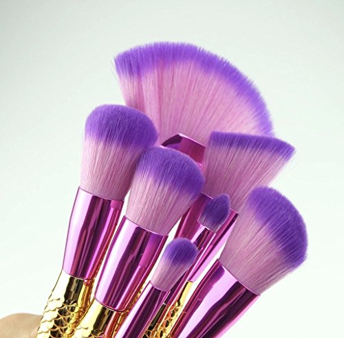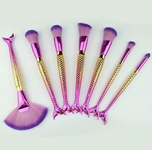Tropical Jewel Mermaid Tail Makeup Brush Set 7 Piece Set Gold Contour Blush Foundation Brush
