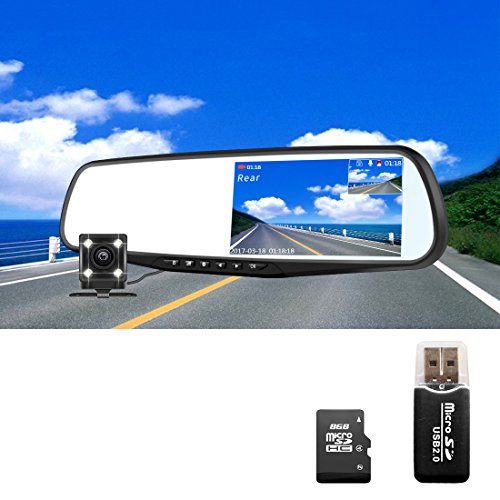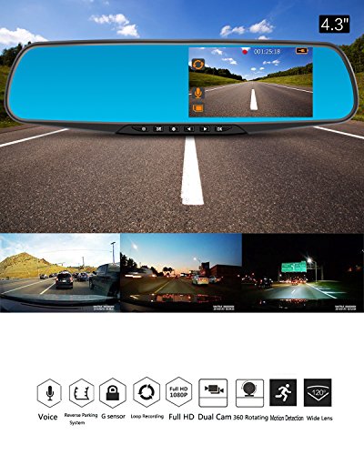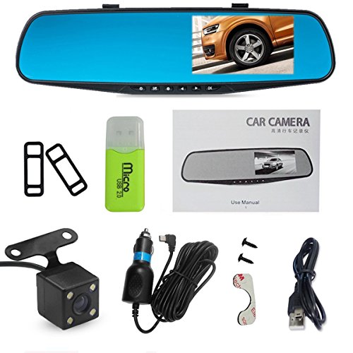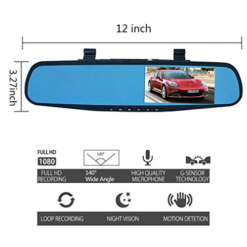 DASH CAM 1080P FULL HD 4.3" LCD MIRROR CAR VIDEO RECORDER DUAL LENS VEHICLE CAMERA CAR DVR ROAD DASH CAM WITH NIGHT VISION MOTION DETECTION