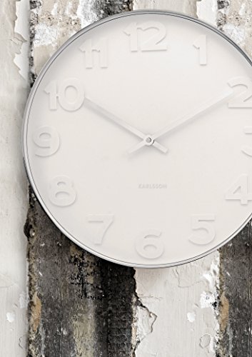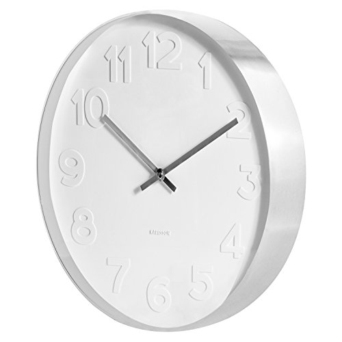 -. Binding : Kitchen -. Brand : Present Time -. Color : white -. Feature : Simplistic design / White face and numbers / Polished steel trim / Measures 20-Inch in diameter / Requires 1 AA battery (not included) -. Label : Present Time -. Manufacturer : Present Time -. Model : KA4381-PARENT -. MPN : KA4381-PARENT -. PackageQuantity : 1 -. PartNumber : KA4381-PARENT -. ProductGroup : Home -. ProductTypeName : HOME -. Publisher : Present Time -. Studio : Present Time -. Title : Karlsson Wall Clock Mr. White Numbers Steel Polished