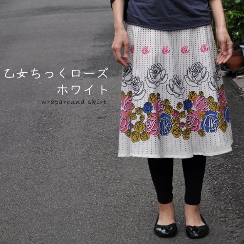 -. Title : スカート ひざ丈 巻きスカート 乙女ちっくローズ 薔薇 ラップスカート インド綿 ホワイト フリーサイズ