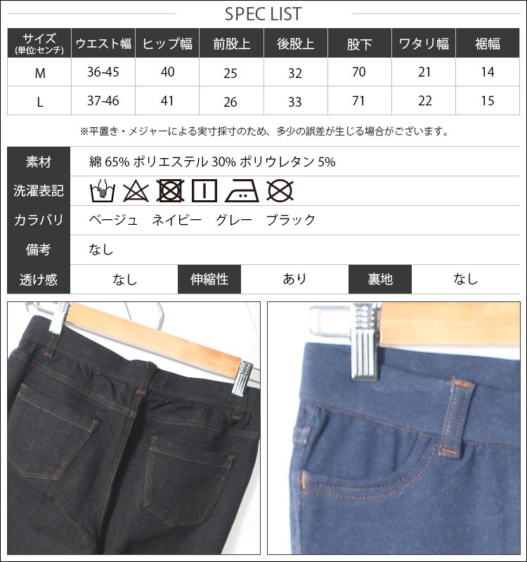 L:ウエスト幅 37-46cm ヒップ幅 41cm 前股上 26cm 後股上 33cm 股下 71cm わたり幅 22cm 裾幅 15cm