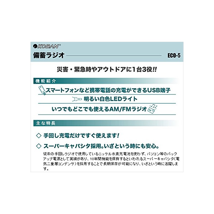 원본상품명: 太知ホ?ルディングス(KOBAN) 手回し充電 備蓄ラジオ ECO-5