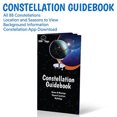 BONUS ILLUSTRATED CONSTELLATION GUIDE + APP. Learn about the stars as you spot them on the globe with an illustrated guide that includes detailed descriptions of all 88 constellations - plus download the app for even more interactive world map info!
